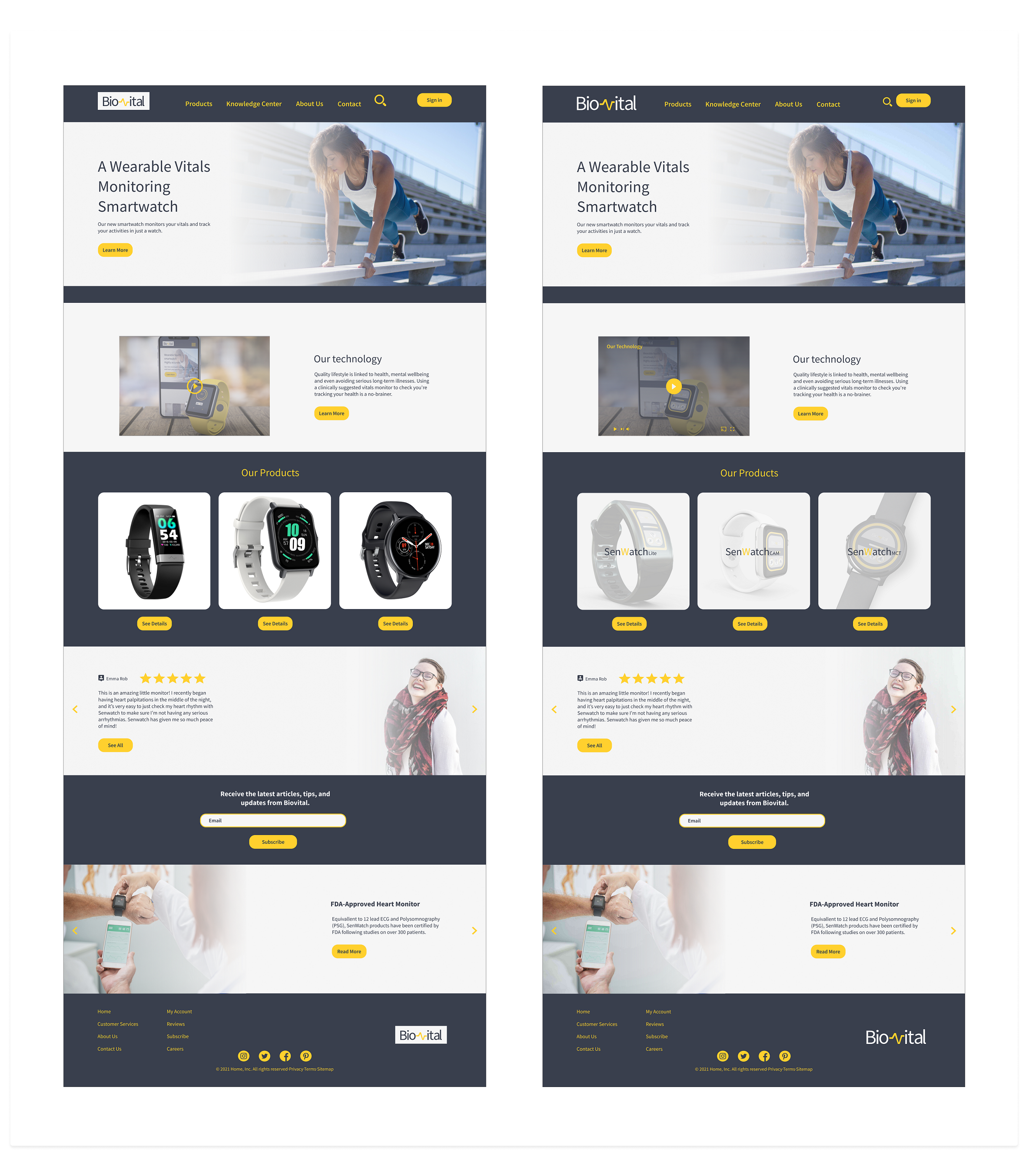 The main goal of Biovital website was to introduce a set of new wearable devices to the market for the first time. Being a new brand in the market, Biovital needed a responsive website that provides customers (patients and health care providers) with the information and instructions they needed. They also needed a set of logos to establish their brand.