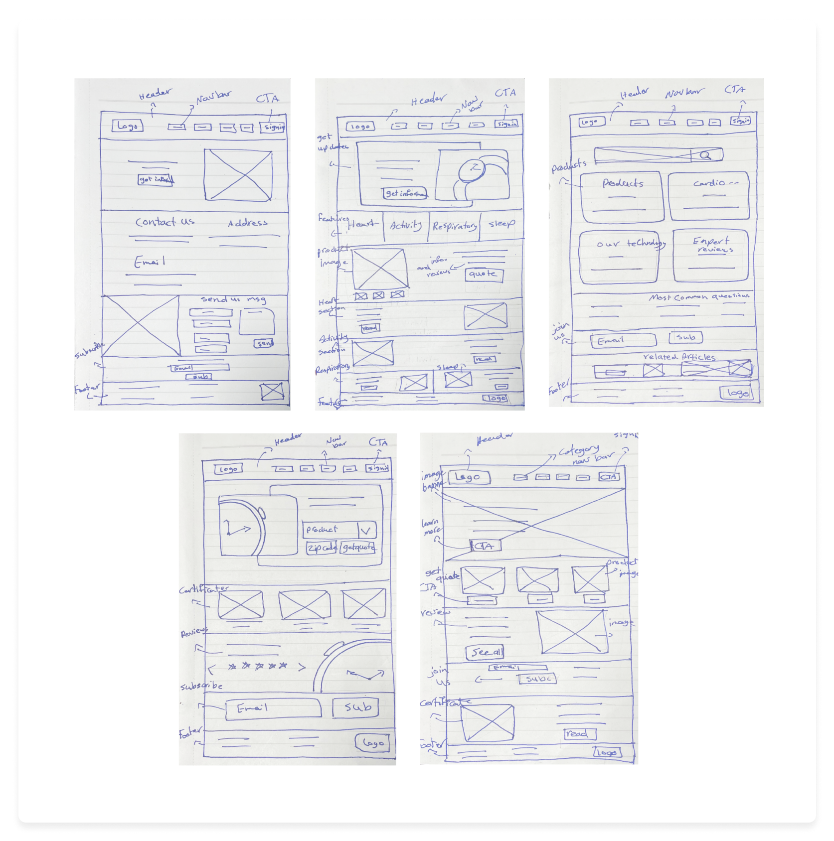 The thinking process led to the creation of initial wireframes that provide the minimum functionalities required by the user flow.