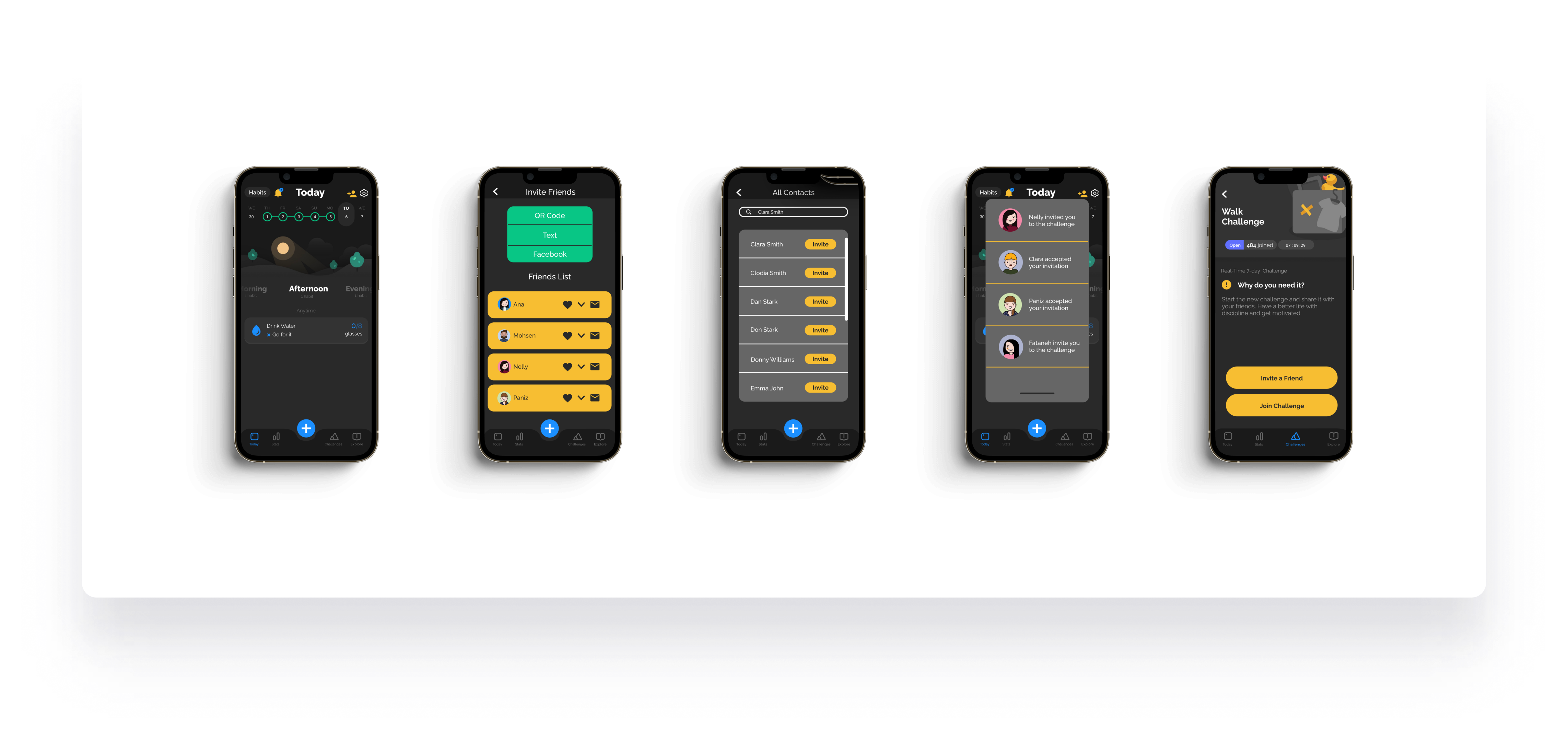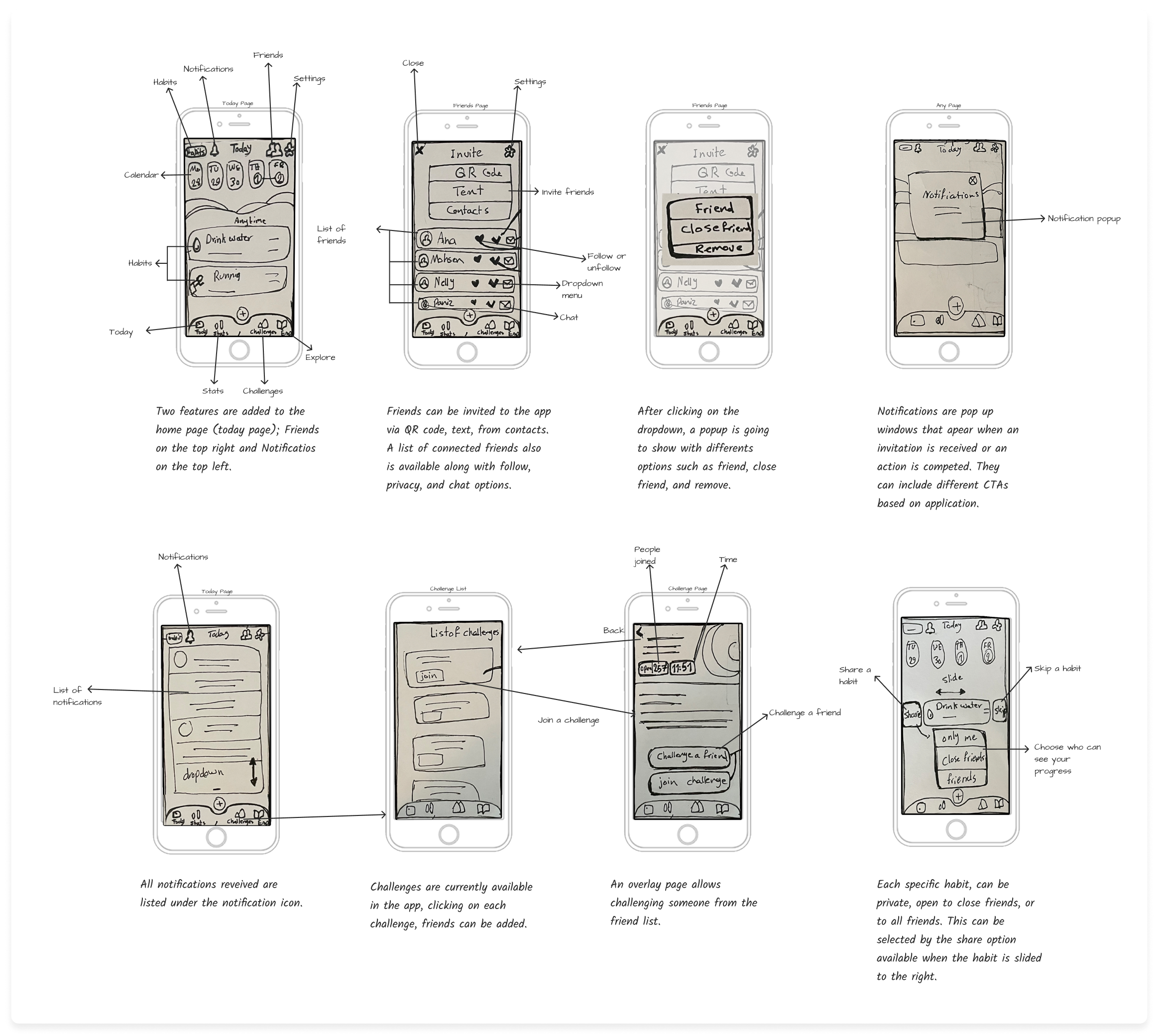 To expand upon the current capabilities by adding a few new features to the existing app. New features include share habits and challenges with friends, send invitations via different methods, and provide a communication channel within the app.