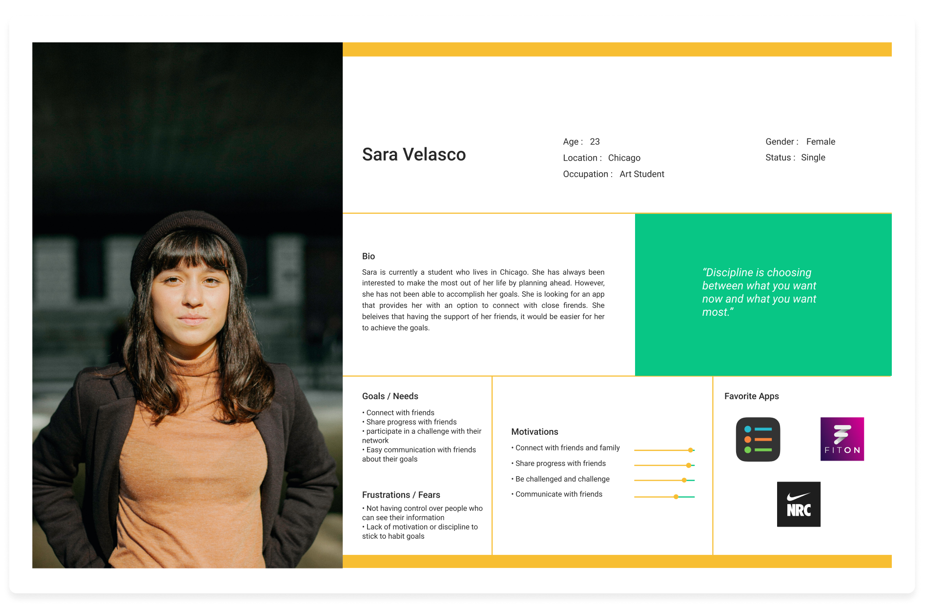 Meeting Sara's needs and avoiding her fears became my main objectives. I tried to add features that give her the ability to connect and share, and customize the app to ensure all frustrations are removed.