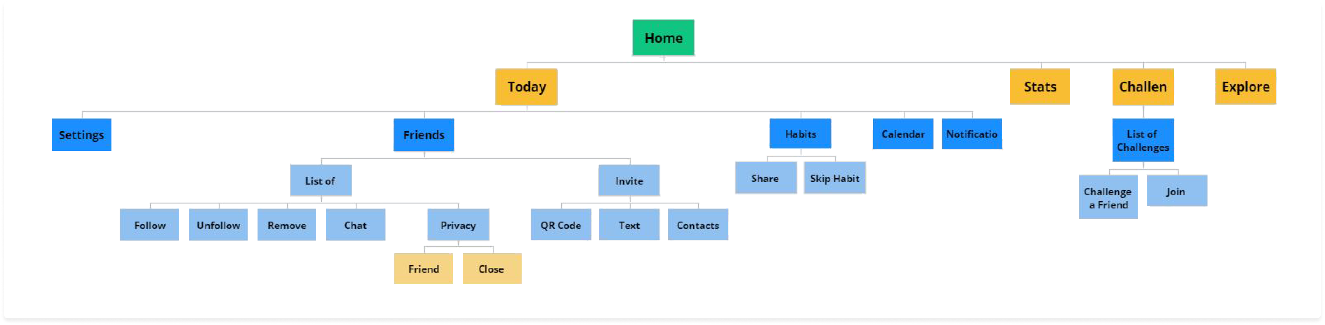 Having all required additional features selected, it was the time to categorize and integrate them into the application map. I added a new major category for the "Friends" and the remainder of features were added to the existing categories.