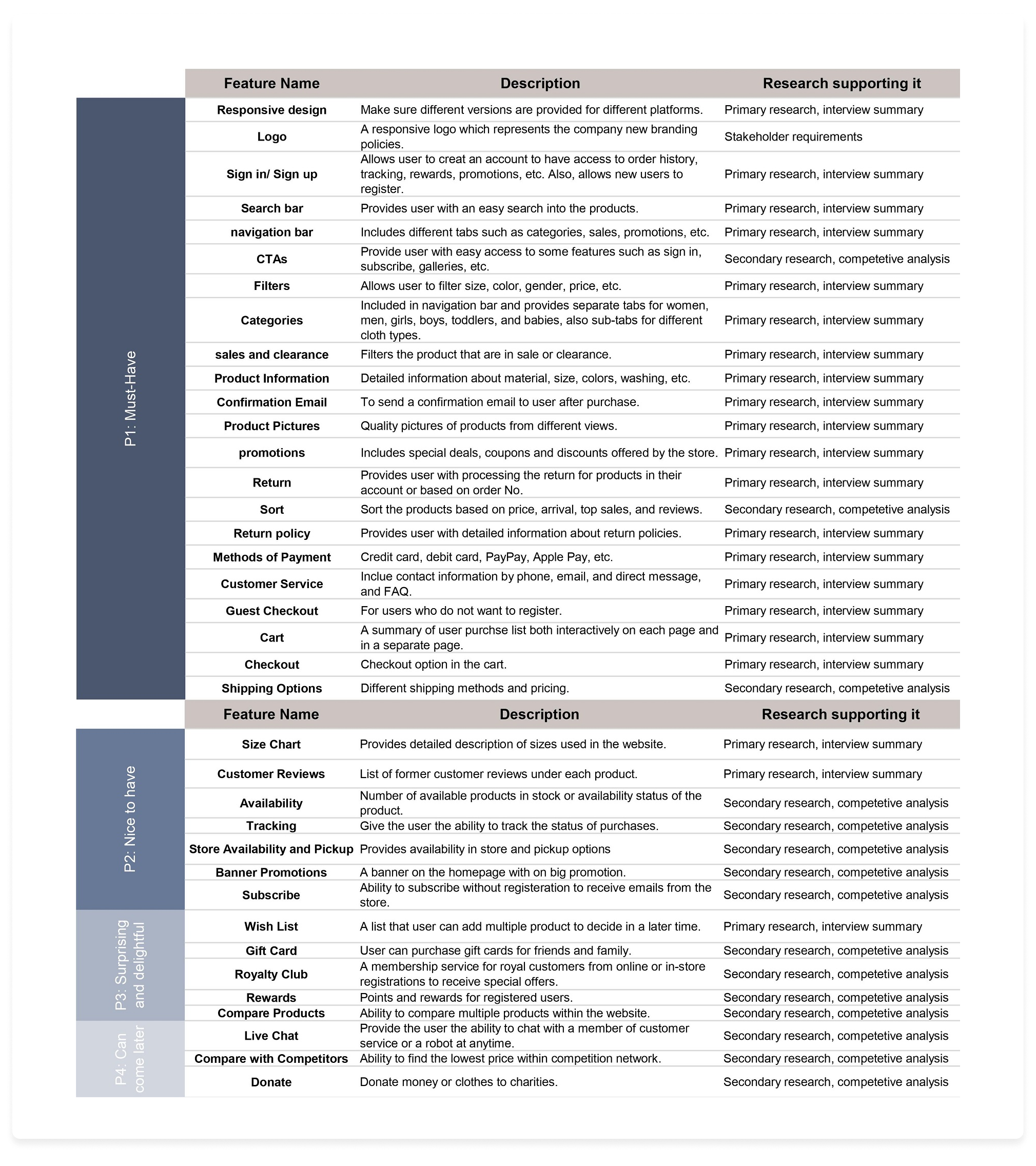 Since Stylee was new in the online shopping market and given the success of competitors, I needed to understand what the competitors do right and what they do wrong to be able to design the website.