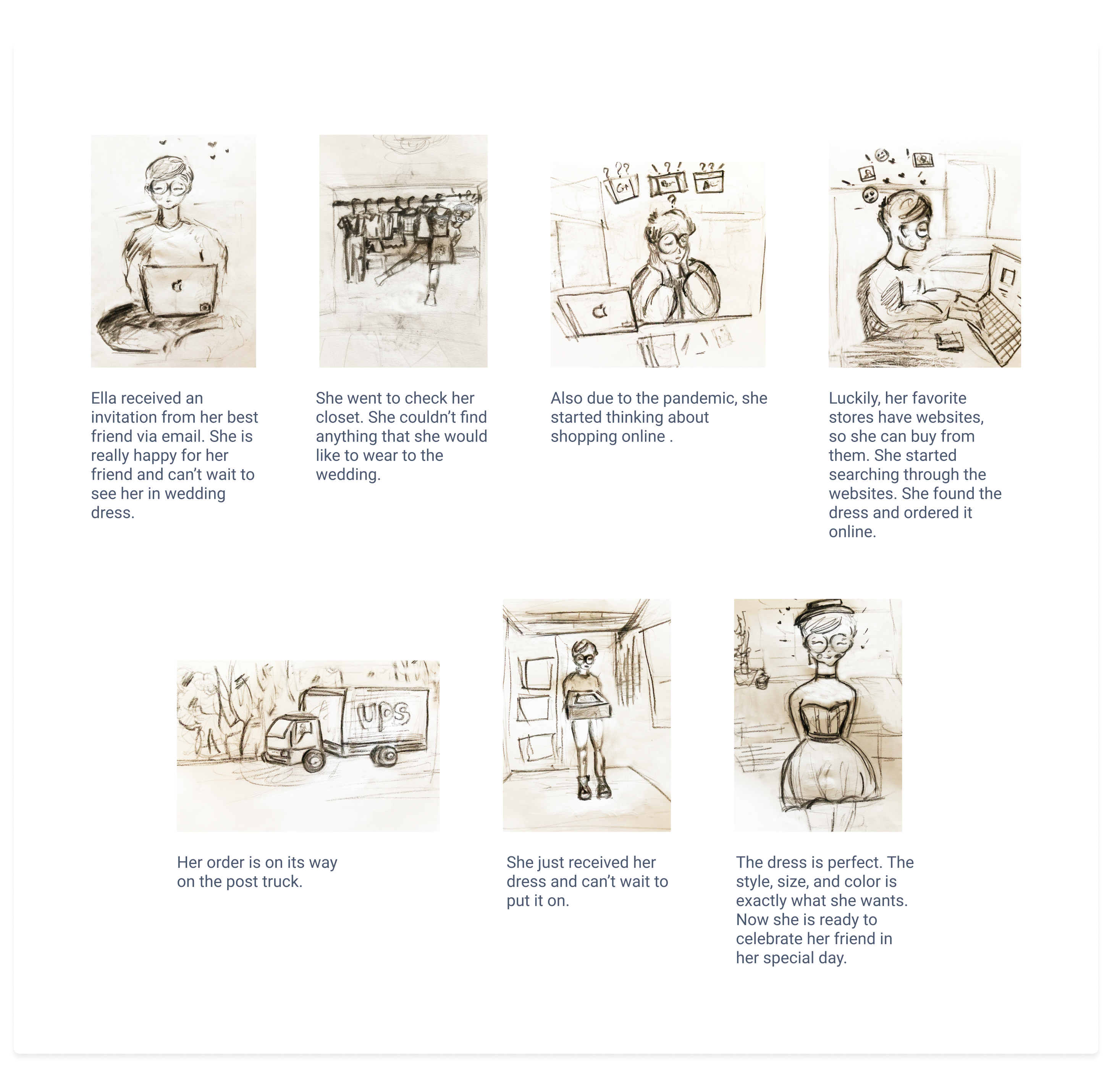 Creating a storyboard helped me better understand the flow of Ella's interaction with a product.